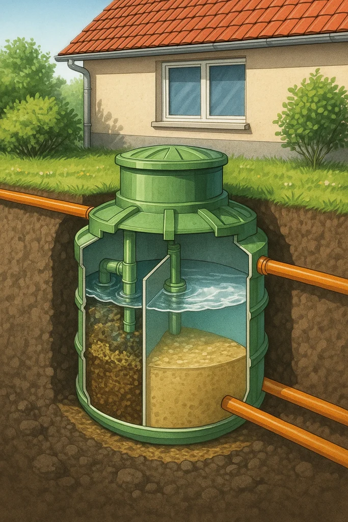 Une micro-station d’épuration traite les eaux usées d’un logement ou bâtiment, en remplacement d’une fosse septique.